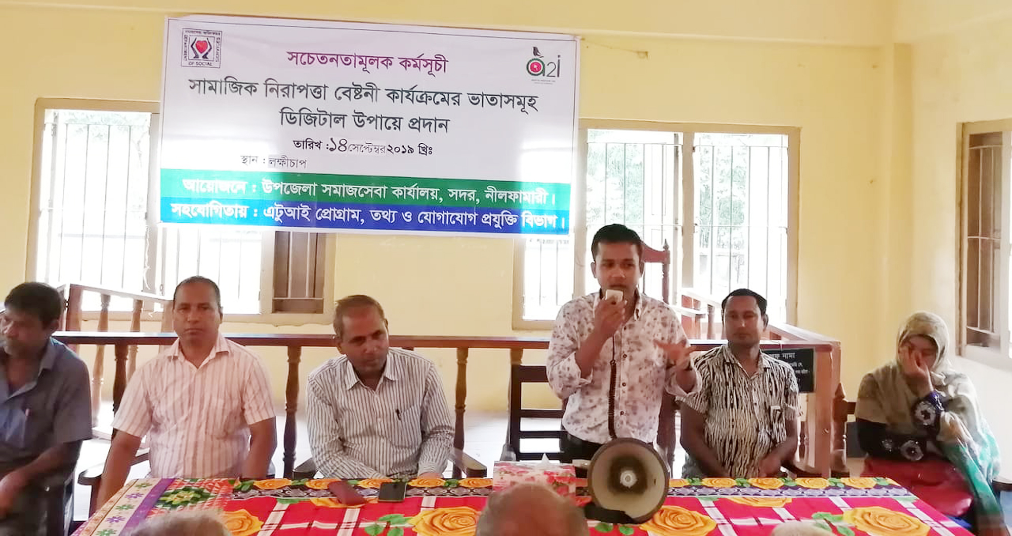নীলফামারী প্রতিনিধি : শনিবার (১৪ই সেপ্টেম্বর) সকাল ১১ টার সময় নীলফামারী সদর উপজেলার লক্ষিচাপ ইউনিয়ন পরিষদের সচেতনতামূলক সভায়, নিজেদের মোবাইলে যথাসময়ে চলে যাবে সামাজিক নিরাপত্তা বেষ্টনীর ভাতাভোগীদের ভাতার টাকার তথ্য। পাশের পে-পয়েন্টে গিয়ে বায়োমেট্রিক পদ্ধতিতে ইচ্ছামত টাকা তুলতে ও সঞ্চয় করতেও পারবেন ভাতাভোগীরা এসব তথ্য জানানো হয়।নীলফামারী সদর উপজেলা সমাজ সেবার আয়োজনে লক্ষিচাপ ইউনিয়ন পরিষদের হলরুমে সচেতনতামূলক আলোচনা সভা অনুষ্ঠিত হয়। লক্ষিচাপ ইউনিয়ন পরিষদের চেয়ারম্যান আমিনুর রহমানের সভাপতিত্বে, প্রধান অতিথি ছিলেন, নীলফামারী সদর উপজেলা সমাজ সেবা অফিসার মোঃ গোলাম রব্বানী।উক্ত অনুষ্ঠানে প্রধান অতিথি মূল বক্তব্যে বলেন ,ভাতাভোগীদের কষ্ট লাঘবে সরকার অনলাইন ব্যাংকিং চালু করতে যাচ্ছে।