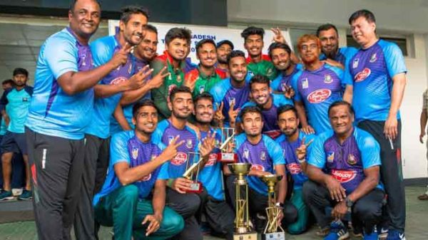 জবাব দিতে নেমে দলীয় ১১ রানে আফিফের বলে সাজঘরে ফেরেন পাথুম নিশানকা (৬)। এর পরপরই আরেক ওপেনার সান্দুনকে (১৮) বোল্ড করেন আবু হায়দার। তবে কামিন্দু মেন্ডিস ও অধিনায়ক আশান প্রিয়রঞ্জনের ব্যাটে ঘুরে দাঁড়াতে চেষ্টা করে লঙ্কানরা। দু’জনের ৬৪ রানের জুটি ভাঙেন সাইফ। ৩৪ রানে ফেরেন প্রিয়রঞ্জন। এরপর প্রিয়মল পেরেরাকে (৭) নিজেরে দ্বিতীয় শিকারে বানান সাইফ।
