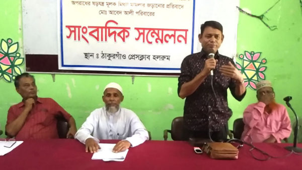 শনিবার (১২ অক্টোবর) দুপুরে ঠাকুরগাঁও প্রেসক্লাবে আয়োজিত এই সংবাদ সম্মেলনে লিখিত বক্তব্য পাঠ করেন আবেদ হোসেনের ছোট ভাই একরাম হোসেন।