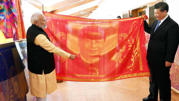 একদিকে যেমন চীনা প্রেসিডেন্ট শি জিনপিংকে তারই প্রতিকৃতি উপহার দিলেন প্রধানমন্ত্রী নরেন্দ্র মোদি, অন্যদিকে জিনপিংও মোদির হাতে তুলে দিয়েছেন তার প্রতিকৃতি। মোদি জিনপিংকে যে প্রতিকৃতি উপহার দিয়েছেন সেটি রেশমি সুতায় বোনা। আর মোদির প্রাপ্ত উপহারটি পোর্সেলিনের তৈরি।