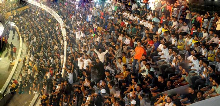 ফাইনালে স্বাগতিক চট্টগ্রাম আবাহনীকে সমর্থন জানাতে কানায় কানায় ভরে উঠেছিল এম এ আজিজ স্টেডিয়াম। ৩৫ হাজার ধারণ ক্ষমতাসম্পন্ন স্টেডিয়ামে তিল পরিমাণ জায়গা খালি ছিল না। এর বাইরে টিকেট কেটেও খেলা দেখতে পারেননি প্রায় হাজার দুয়েক দর্শক। এরই মাঝে খেলাচলাকালে ও খেলা শেষে মাঠ ছেড়ে যাওয়ার সময় বিপুল দর্শক ‘সাকিব, সাকিব’ স্লোগান তুলে চারপাশ মাতিয়ে তোলে। গলা ছেড়ে একযোগে স্লোগান দিতে দিতে তারা ভালোবাসা জানায় কিংবদন্তী সাকিব আল হাসানকে। বীর বিক্রমে আবারও খেলার মাঠে ফিরে আসার জন্য তাকে আহ্বান জানায় তারা।