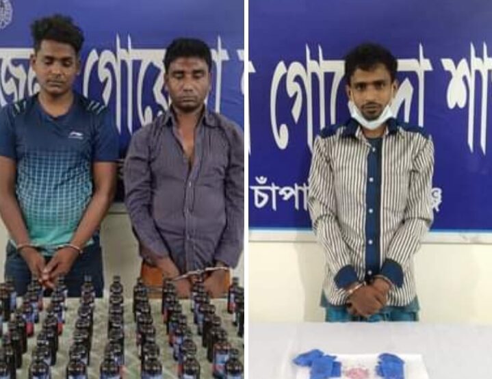 জেলা গোয়েন্দা শাখা চাঁপাইনবাবগঞ্জ এর পৃথক দুইটি অভিযানে ৭০ বোতল ফেন্সিডিল ও ১৫০০ পিস ইয়াবা ট্যাবলেট সহ ০৩ জন আটক।