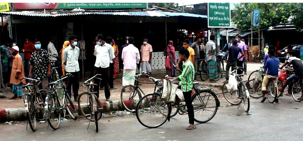 জেলা শহরের বাসষ্ট্যান্ড, চৌরাস্তা ও কালিবাড়িসহ বিভিন্ন এলাকা ঘুরে দেখা গেছে কাজের সন্ধানে আসা শ্রমজীবী নারী ও পুরুষেরা করোনা ভাইরাসকে অপেক্ষা করে জোটলা বেধে দাঁড়িয়ে আছে কাজের সন্ধানে। কিন্তু মহামারি করোনা ভাইরাসের কারনে মাঠে এসেও কাজ মিলছে না তাদের। ঘন্টার পর ঘন্টা দাঁড়িয়ে থেকেও কাজ না পেয়ে বাড়ি ফিরে যেতে হচ্ছে এই শ্রমজীবী অসহায়দের।
