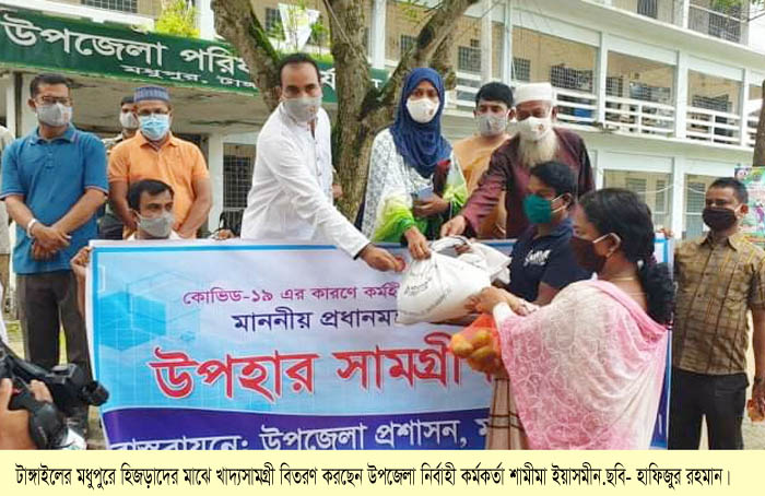 টাঙ্গাইলের মধুপুরের ৩৪ জন হিজড়াদের মাঝে দুর্যোগ ব্যবস্থাপনা ও ত্রাণ মন্ত্রণালয়ের অর্থায়নে খাদ্যসামগ্রী বিতরণ করা হয়েছে।