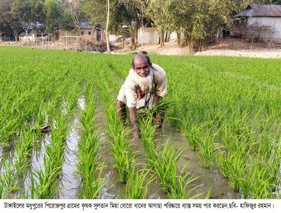 টাঙ্গাইলের মধুপুরে বোরো ধান পরিচর্যায় আগেভাগে মাঠে নেমেছেন কৃষকরা। তাদের প্রধান আবাদি ফসল নানা জাতের বোরো ধান চারা কৃষকরা পরিচর্যা করছেন।