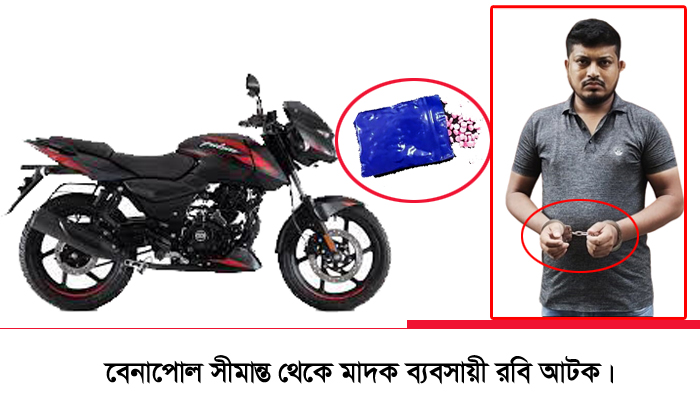 যশোর ব্যাটালিয়ন (৪৯ বিজিবির) এজাহার সূত্রে জানা যায়, বেনাপোল সীমান্তে যশোর ব্যাটালিয়ন কর্তৃক গোয়েন্দা তৎপরতাসহ মাদকবিরোধী অভিযান চলমান রয়েছে। এরই চলমান অংশ হিসেবে গোপন সংবাদের ভিত্তিতে ২৮ই জুলাই রাত ৭ ঘটিকায় ৪৯ বিজিবি এর একটি চৌকষ তল্লাশি টিম যশোর জেলার বেনাপোল পোর্ট থানাধীন শিকড়ী বটতলার নিয়মিত বিশেষ তল্লাশি টিম অভিযান পরিচালনা করে। এসময় বারপোতা এলাকা থেকে দ্রুত গতিতে আসা একটি কালো পালসার মটর সাইকেল থামতে বললে সে মটরসাইকেল ফেলে পালানোর চেষ্টা করে। এক পর্যায়ে ব্যপক জিজ্ঞাসাবাদে সে স্বীকার করে তার মোটরসাইকেলের হেডলাইট এর ভিতরে বিশেষ কায়দায় ইয়াবা লুকায়িত আছে। এ সময় উপস্থিত জনগণের সামনে তার মটর সাইকেলের হেডলাইটের মধ্যে থেকে নীল পলিথিনে মোড়ানো ৪০ পিস ইয়াবা সহ তাকে হাতে নাতে আটক করা হয়। আটক ইয়াবা ব্যবসায়ী রবিকে মাদকদ্রব্যসহ সহ বেনাপোল পোর্ট থানায় মামলা দিয়ে হস্তান্তর করেছে বিজিবি।