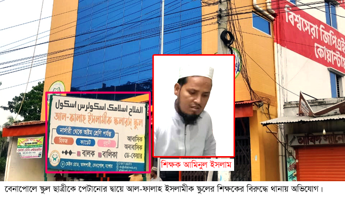 যশোরের বেনাপোলে পাঁচ বছর বয়সী নার্সারী পড়ুয়া এক ছাত্রীকে মারধরের কারনে ভূঁইফোড় আলফালাহ্ ইসলামী স্কলারস স্কুলের শিক্ষক আমিনুল ইসলাম (৪০) এর নামে থানায় অভিযোগ হয়েছে। লিখিত অভিযোগটি করেছেন ভূক্তভোগী স্কুল ছাত্রীর পিতা মোস্তাফিজুর রহমান। এছাড়াও তিনি শার্শা উপজেলা কর্মকর্তার নিকট অভিযোগ দ্বায়ের করেছেন।